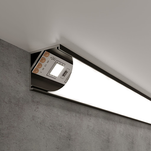 Perfil de aluminio para tiras LED, enchufes, fijaciones, difusor de luz para tiras LED.